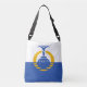 Sac Crossbody avec un design avec le drapeau d'Orlando, Floride. Drapeau bleu et blanc design par la Ville d'Orlando et Tim Eggert. Source : https://www.orlando.gov/Our-Government/News-and-Information/City-Official-Assets