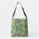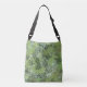Cross Body Storage Tote Bag all over print style fashion statement accessory printed with Green Leaf Trees With Blue Sky Peaking Through Art hand drawn watercolor painting graphic design illustration by TheFabricSeal print on demand shop at Zazzle.com #ZazzleMade ©️Original. https://www.zazzle.com/store/thefabricseal