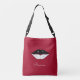 Lèvres noires et blanches chic, calligraphie sur sac crossbody bordeaux.