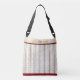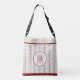 Our Preppy Atomic Age original pattern print has a retro feel in the cool mint and mauvy-pink tones of the mid-20th Century, accented with coordinating deep crimson stripes, polka dots, and golden dijon mid-century-chic "bursts". This crossbody bag is perfect for having your baby or preschooler's essentials at the ready when you're on the go. The front is customizable with your child or baby's (or grandchild's /niece's /nephew's) name, or other custom text. But don't forget you! (Your own monogram [the Mommy /Grandma /Aunt's, etc.'s] has its place inside the circle.)