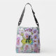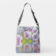 Sac Ajustable Pansies blanches rose monogramme sur l'aquarelle