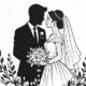 Mariée et Groom se marier silhouette un voile et fleurs autour d'eux arrière - plan blanc.