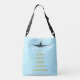Voler autour du monde sur le sac Crossbody bleu clair. Les noms de ville peuvent être personnalisés. Avion et orbes légers sur bleu turquoise clair. Portez votre destin de rêve avec vous. Plus qu'un simple sac !