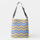 Allover sac fourre-tout d'impression avec un design motif rayé de chevrons brillant, audacieux en violet, vert chartreuse, bleu aqua, et blanc avec citation de texte noir qui dit brillant plus brillant que tous les étoiles!
