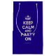 Basé sur l'original Keep Calm et ... affiche cette crème et bleue Keep Calm et Party On Gift Bag dispose d'une police personnalisée qui correspond à l'original de près.