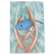 Baleine nageant à travers les herbes d'un côté, deux poulpes dans les herbes à l'envers. L'herbe s'étend autour des animaux pendant qu'ils nagent à travers les eaux bleues et blanches applaudies.