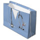 Conception unique de sacs-cadeaux sur le thème médical, avec gommage à l'infirmière bleue, stéthoscope et illustration au couteau de l'armée suisse. Ajoutez du texte pour customiser votre infirmière, votre médecin ou votre assistant médical favori.