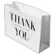 Exprimez votre gratitude avec ce sac cadeau de remerciement moderne. Caractérisé par "Merci" dans une police grasse avec des noms personnalisés insérés entre les deux sur un fond blanc. Fait le cadeau parfait ou le sac de shopping.