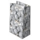 Le sac cadeau en papier est affiché dans une couleur blanche avec une finition brillante avec une impression festive de ballons couleur argent. Petite taille montrée Customiser ce sac cadeau ou acheter tel quel.