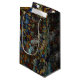 Des feuilles colorés et une texture imitation grain de bois en font un sac cadeau neutre pour le genre. Il y a des tissus assortis et d'autres tailles de sacs.