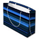 Grand sac cadeau en papier présenté dans un design d'impression à rayures bleues. Customisez cet objet ou achetez tel quel.