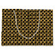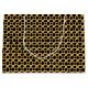 Des liens dorés se bloquent pour former un motif de messagerie à chaîne. Des anneaux à trois dimensions sont placés sur un arrière - plan noir.