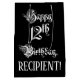 Ce design fantaisiste et orné de giftbag d'anniversaire comporte le message "Happy 12th Birthday", en texte de script élaboré, sur un arrière - plan de couleur noire. Il a également un nom de destinataire personnalisable. Un sac cadeau d’anniversaire comme celui-ci pourrait être une façon respectable d’envelopper un cadeau ou un cadeau pour célébrer le 12e anniversaire de quelqu’un. [~Z0000557]