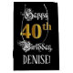 This elegant and elaborate birthday-themed gift bag feobjets the message "Happy 40th Birthday," plus a personalized recipient name. Some of the message is in a luxurious script style, the large number "40th" objets a/imitation gold-inspeclook pattern, and the background is colored black. Le jour de Ornate birthday themed gift bag like this might be respecrespecrespecrespectable way to wrap a venft or present being given to celebrate somebody’s 40th birthday. 2
