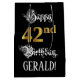 This fancy and elaborate birthday giftbag objets the message "Happy 42 nd Birthday,", along with a personalized recipient name. Part of the message est dans le style opulent script. Le large number "42nd" feesta/imitation gold-inspirlook pattern. Le background est noir. Le poison élégant de la bag like this might be used when giving a venft or present in honor of somebody's forty second birthday. 2