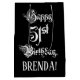 Ce modèle de sac cadeau fantaisie et somptueux à thème d'anniversaire comporte le message "Happy 51st Birthday", en texte de script formel, sur un arrière - plan de couleur noire. Il a également un nom de destinataire modifiable. Un giftbag comme celui-ci pourrait être une façon respectable d'envelopper un cadeau d'anniversaire ou un cadeau donné à quelqu'un qui célèbre son 51e anniversaire. [~Z0000557]