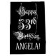 Ce design luxueux et élégant de sac cadeau d'anniversaire comporte le message "Happy 53rd Birthday", en texte de script formel, sur un arrière - plan de couleur noire. Il a également un nom de destinataire personnalisé. Un giftbag à thème d'anniversaire orné comme celui-ci pourrait être une façon respectable d'envelopper un cadeau ou un cadeau qui est donné à quelqu'un qui célèbre son cinquante-troisième anniversaire. [~Z0000557]