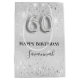 Soirée élégante, classique, glamour à 60ème anniversaire. Un arrière - plan métallique argenté. Décoré de poussière de parties scintillant. Personnalisez et ajoutez un nom. Avec le texte : Joyeux anniversaire. Le nom est écrit avec un script de style moderne écrit à la main. Le numéro 60 est écrit avec une police de style ballon.
