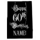 Ce sac cadeau d'anniversaire orné et élégant présente le message "Joyeux 60e anniversaire", en texte de style opulent, sur un arrière - plan de couleur noire. Il a également un nom de destinataire modifiable. Un giftbag fantaisiste comme celui-ci pourrait être une façon respectable d'envelopper un cadeau d'anniversaire ou un cadeau donné à quelqu'un qui célèbre son 60e anniversaire. [~Z0000557]