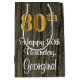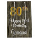 Ce design élégant, élégant et luxueux de giftbag d'anniversaire comprend un grand numéro ordinal "80th" ayant une apparence fausse/imitation or, en plus du message de voeux d'anniversaire "Happy 80th Birthday," et un nom de destinataire personnalisé dans une police de style script. Il possède également un motif arrière - plan d'inspiration imitation bois. Un sac cadeau d'anniversaire sophistiqué comme celui-ci pourrait être une façon amusante d'envelopper un cadeau ou un cadeau donné à quelqu'un qui célèbre son quatre-vingts anniversaire. [~Z0000520]