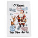A jolly figure of Santa Claus stands proudly next to a friendly reindeer, showcasing a festive holiday sack adorned with charming stickers. Snowflakes gently fall around them, creating a warm and joyful atmosphere perfect for the Christmas season.