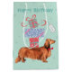 Joyeux salutations d'anniversaire avec ce design mignon avec un Dachshund long souriant équilibrant une pile de cadeaux d'anniversaire sur son dos. Le texte peut facilement être modifié; il suffit de cliquer sur le bouton customiser.