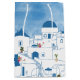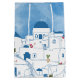 Sac Cadeau Moyen Aquarelle bleue et blanche Santorin Grèce