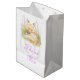 Joli sac cadeau moyen baby shower avec un renard adorable et fleurs rose et violet. Parfait pour un baby shower de printemps ou d'été. Les mots peuvent être changés en fonction de vos propres détails ou exigences