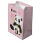 Sac Cadeau Moyen Bébé Panda Ours Rose Coeurs Personnalisé
