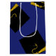 Sac cadeau de graduation créative pour la grade avec capuchon de graduation noir et or sur arrière - plan bleu. Modifier le texte pour ajouter son nom et son année de classe supérieure.