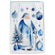 Sac Cadeau Moyen Bleu, Argent et Blanc Japandi Père Noël
