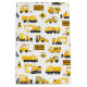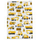 Camions de construction mignons, panneaux d'avertissement et cônes de construction motif sur un arrière - plan blanc. Parfait pour un camion de construction qui aime petite fille ou garçon anniversaire ou baby shower thématique de construction.