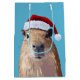 Sac Cadeau Moyen Capybara de fête à Santa Hat