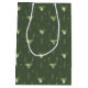 Ce sac cadeau est doté d'un motif branché de silhouettes de tête de cerf avec des bois incurvés, des flèches stylisées et de minuscules flocons de neige dans un effet texturé dans les tons vert mousse sur un arrière - plan vert foncé. Un texte optionnel "Joyeux Fêtes" et un étiquette ont été fournis pour ajouter votre nom et/ou un autre texte. Faites une recherche ID861 à ID864 pour voir d'autres options de couleurs et d'autres produits dans cet ensemble moderne de design de Noël.
