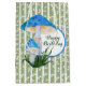 Jolie aquarelle illustration de champignons bleus sur des arbres de peuplier vert et blanc arrière - plan avec texte personnalisable Joyeux Anniversaire.