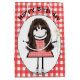 Baguette fille avec cheveux, baskets, robe en vichy, collier de perle sur un motif en vichy rouge et blanc. Le texte de Joyeux Anniversaire peut être modifié.