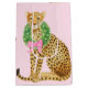 This Christmas gift bag has a Leopard wearing a wreath with a pink bow.