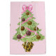 This Christmas gift bag has a Christmas tree with leopard print ornaments.