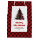 Sac Cadeau Moyen Classic buffalo plaid Christmas bag editable name
