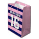 Sac Cadeau Moyen Cot Candy Pink Navy Blue Team Jersey Preppy Stripe