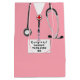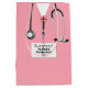 Sacoche-cadeau de doctorat avec gommes d'hôpital rose et art stéthoscope. Modifier le texte pour ajouter le nom du médecin, de l'assistant médical ou de l'infirmière grand.
