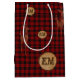 Ce sac-cadeau de cerf de Noël festif au thème rustique à carreaux de buffle est parfait pour la saison hivernale. Il présente un fond à carreaux de buffle rouge, une souche d'arbre avec des initiales et une illustration rustique d'un cerf.
