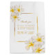 Jolie aquarelle botanique blanc frangipani plumeria fleur mariage cadeau faveur sac aquarelle fleurs avec cadre or. De belles invitations à des mariages floraux sont idéales pour une mariage à thème botanique ou tropicale et sur la plage. Personnalisez avec vos propres détails. D'autres articles correspondants sont également disponibles. © Art et design de la peinture à l'aquarelle florale par Sarah Trett pour www.mylittleedenweddings.com
