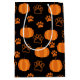 Citrouilles et pattes pour une pawty d'Halloween. Ce mignon sac cadeau avec pattes orange et citrouilles sur un arrière - plan noir est parfait pour les cadeaux d'Halloween pour les chiens ou amoureux de les chiens et les fêtes de chiot. Joyeux Howloween ! Également disponible sur l'emballage cadeau assorti et papier de tissu.