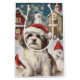 Ce design festif reflète l'esprit joyeux de la période des fêtes, avec un adorable petit portant un chapeau de Père Noël. Le chien est niché dans un pays des merveilles hivernales, avec un bonhomme de neige, un sapin de Noël décoré et des cadeaux joliment emballés. Les flocons de neige tombent doucement, ajoutant une touche magique à la scène, tandis que les couleurs vives des décorations de vacances créent une atmosphère chaleureuse et joyeuse.