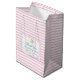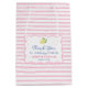 Remerciez vos invités d'être venus avec ces jolis sacs de faveur rose clair présentant un fond imprimé à rayures rose clair et blanc et une bordure en ligne ondulée. La couleur contrastée des rayures (actuellement un rose moyen) peut être personnalisée par vous, ainsi que toutes les couleurs et positions de texte. Vous pouvez également ajouter ou supprimer des zones de texte dans l'outil de conception.