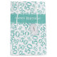 Numéro de jalon 50 : Personnalisez facilement l'étiquette cadeau et "Joyeux 50e anniversaire" avec les modèles texte fournis. Cette conception est un motif aléatoire turquoise et blanc avec 50 répétitions de tailles et d'angles variés dans une impression tout-en-un. C'est une idée amusante pour un emballage cadeau personnalisé pour une occasion spéciale. Il convient pour les anniversaires, anniversaires, ou pour toutes les occasions où vous fêtez le numéro cinquante, juste en changeant le texte. Note : L'étiquette cadeau n'est pas réelle ; elle fait partie du design imprimé.