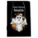 Sac cadeau avec l'illustration d'un fantôme souriant. Décoré de fleurs, arcs-en-ciel et chauves-souris.