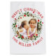 Rouge Joyeux Noël et couronne fleurie sac cadeau de vacances photo moyen. Personnalisez avec votre propre photo et texte.