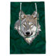 Belle tête de loup sur un arrière - plan vert pour ces sacs-cadeaux personnalisables.